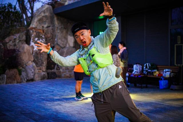 ↑跑团成员身着全套户外装备在双子山准备跑越野